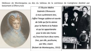Pour sceller leur amitié, en 1910 Montesquiou avait destiné par testament à D’Annunzio le portrait de la comtesse de Castiglione, écrivant cette dédicace ailée au dos du tableau :