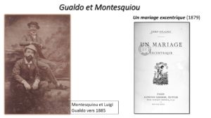 Le début de leur amitié est marqué par l’hommage que Gualdo fait au comte Robert dans son deuxième livre en français, Un Mariage excentrique. Dans sa première lettre retrouvée, du 16 janvier 1881, Gualdo s’excuse auprès de son ami pour son « impardonnable silence », en se plaignant de « l’invincible paresse, des ennuis constants » qui le hantent. Les deux correspondants s’échangent réciproquement des photographies, Gualdo rappelle à son ami la promesse de lui envoyer ses deux profils. Mais, au-delà des images, la curiosité de l’ami italien concerne les œuvres inédites du comte Robert, en particulier Mlle Tocanier, première version du roman La Petite Mademoiselle, dont Gualdo a lu quelques extraits. En passant Luigi ne manque pas de louer chez Robert le « Poète très original », de réclamer les « vers exquis » qui remplissent ses cahiers, dans l’attente de voir enfin publiés ses ouvrages complets. Incorrigible coureur de jupons, il demande aussi des nouvelles des « femmes que vous enfermez dans vos sonnets ».